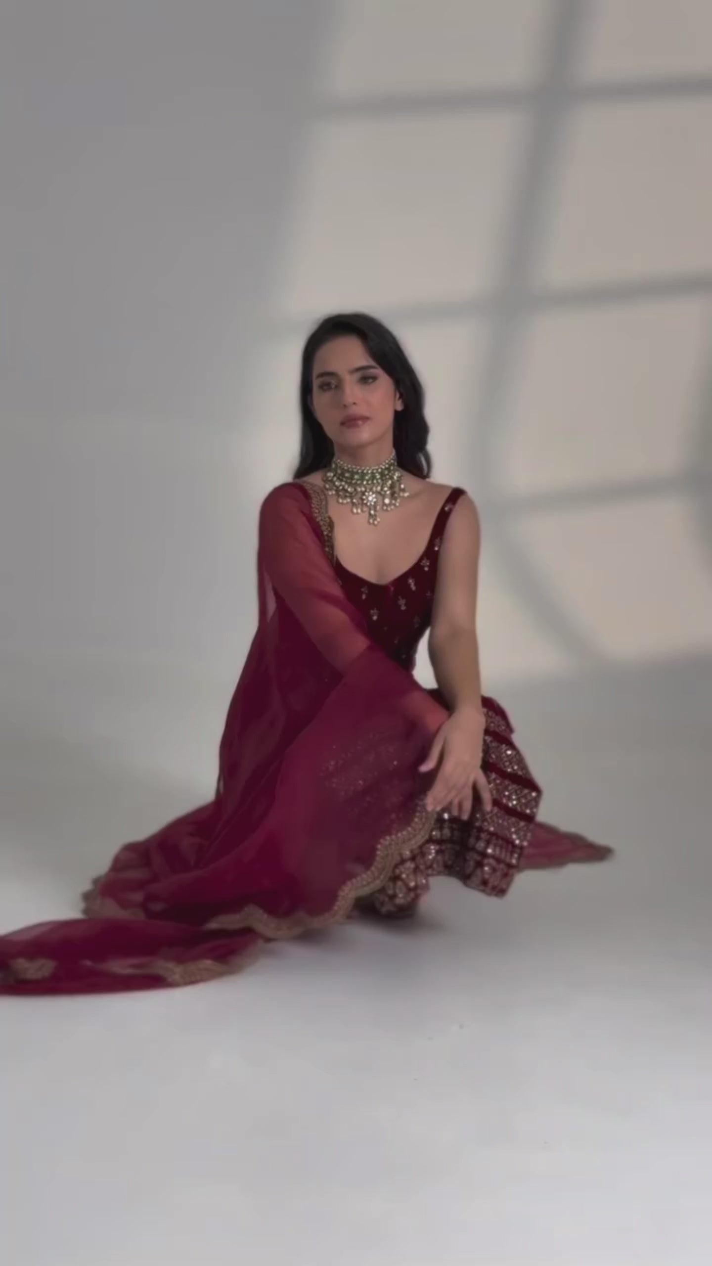 Red Embroidered Silk Anarkali Palazzo Suit Set