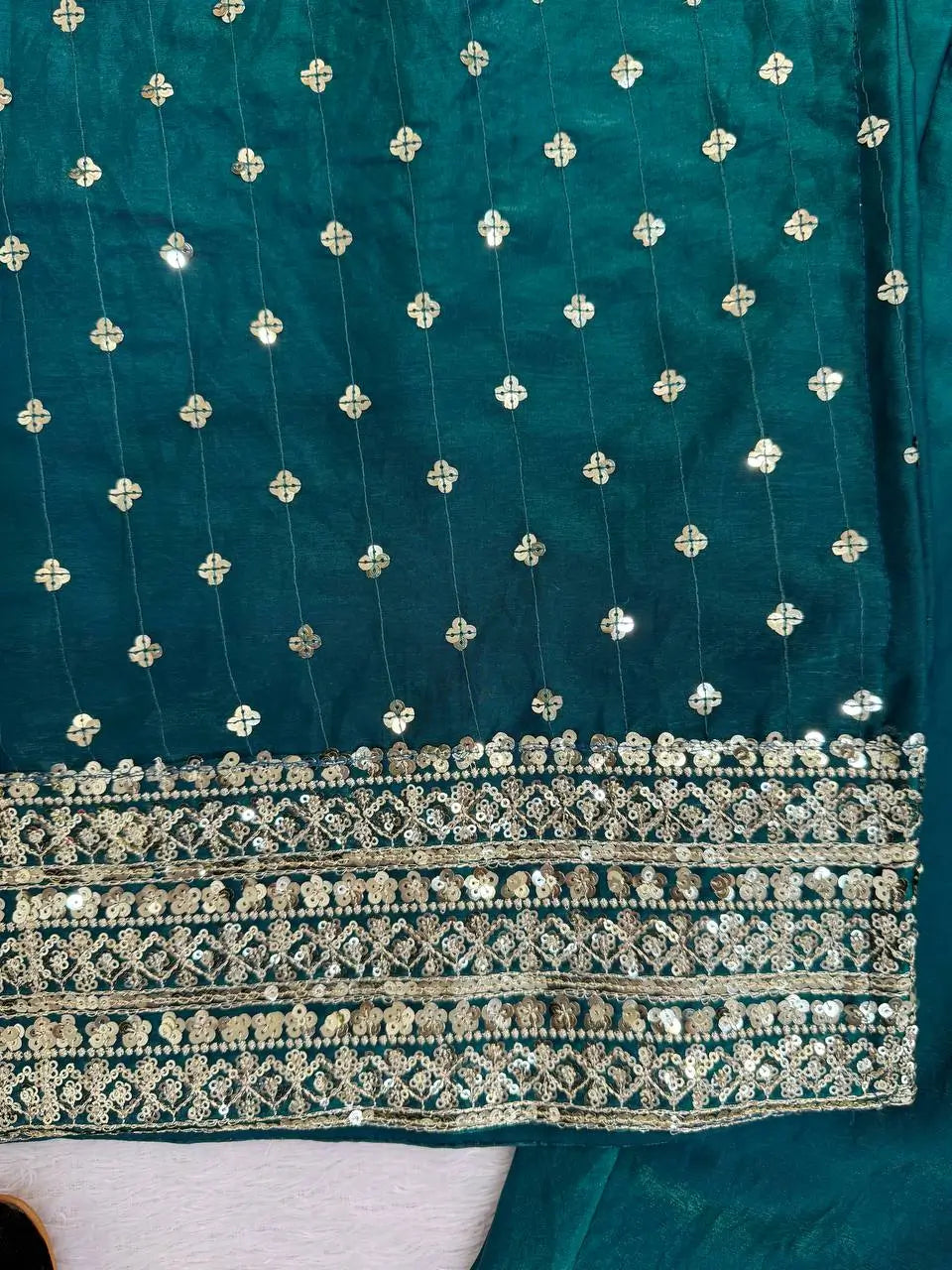 • Work: Intricate Thread Embroidery with Sequin Highlights